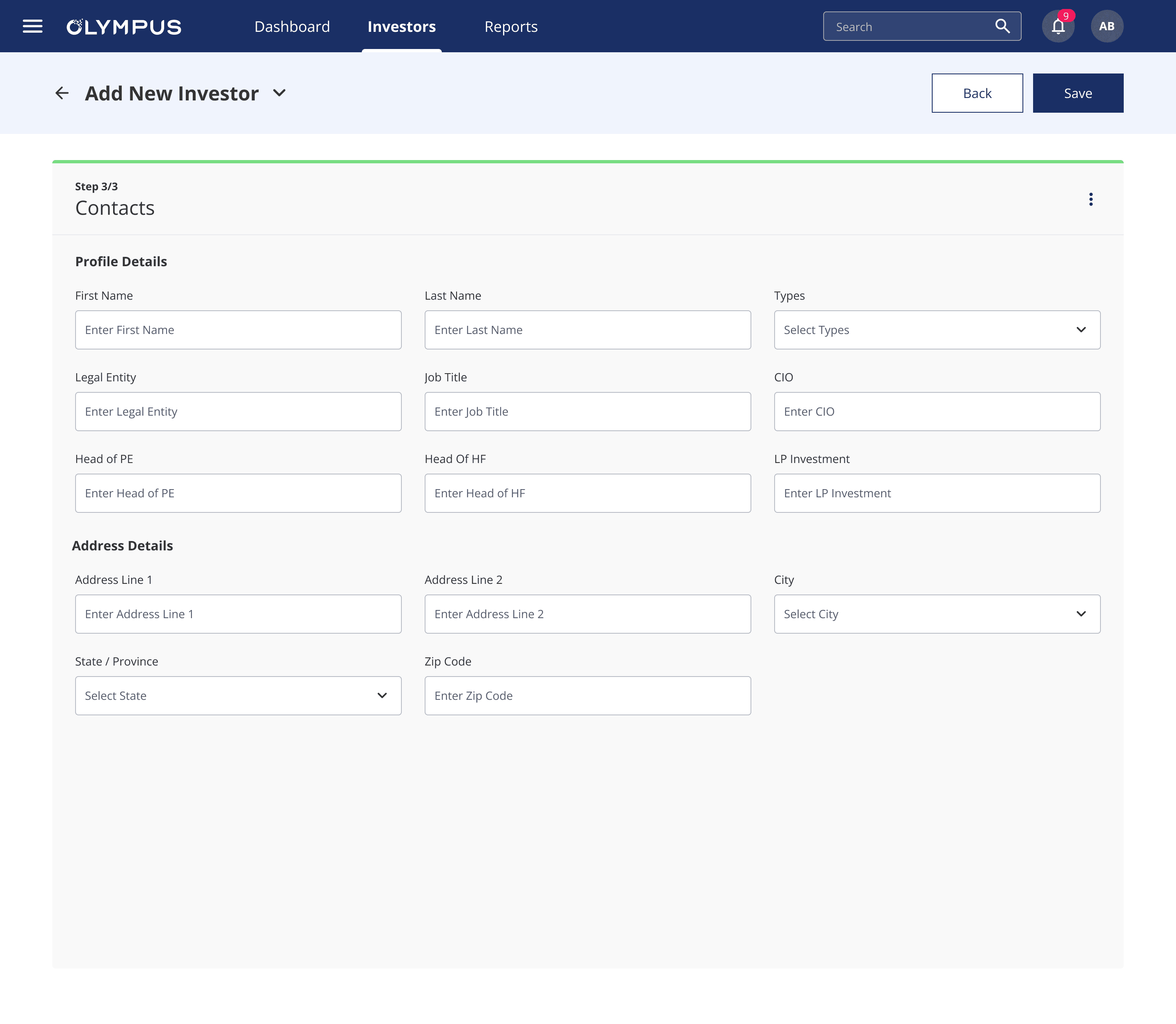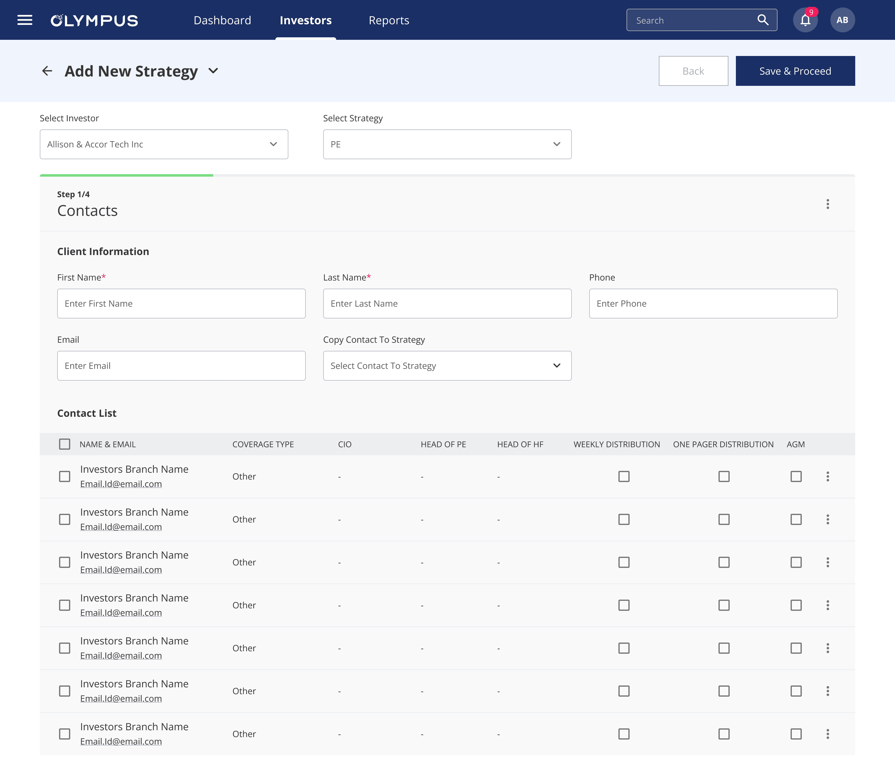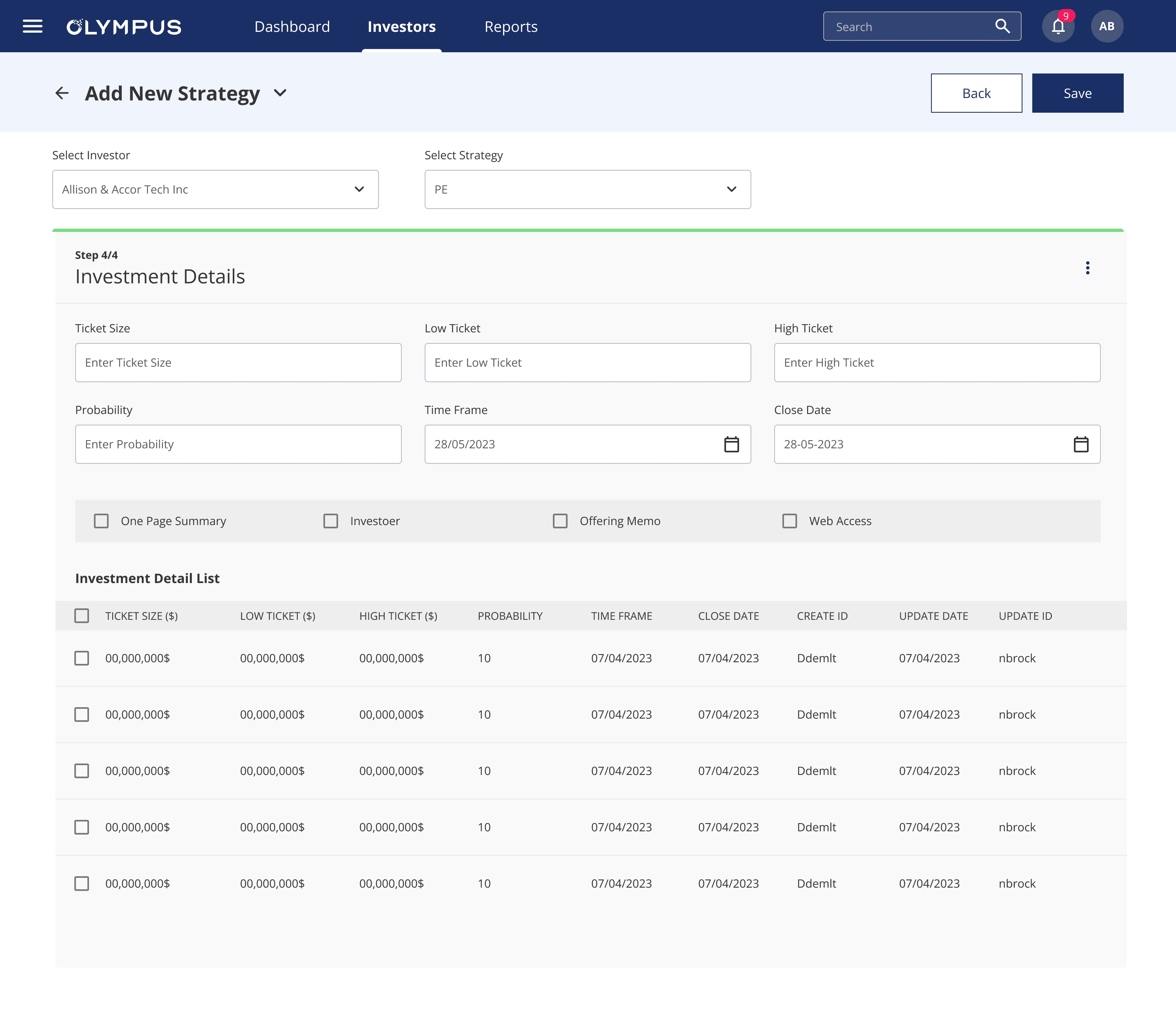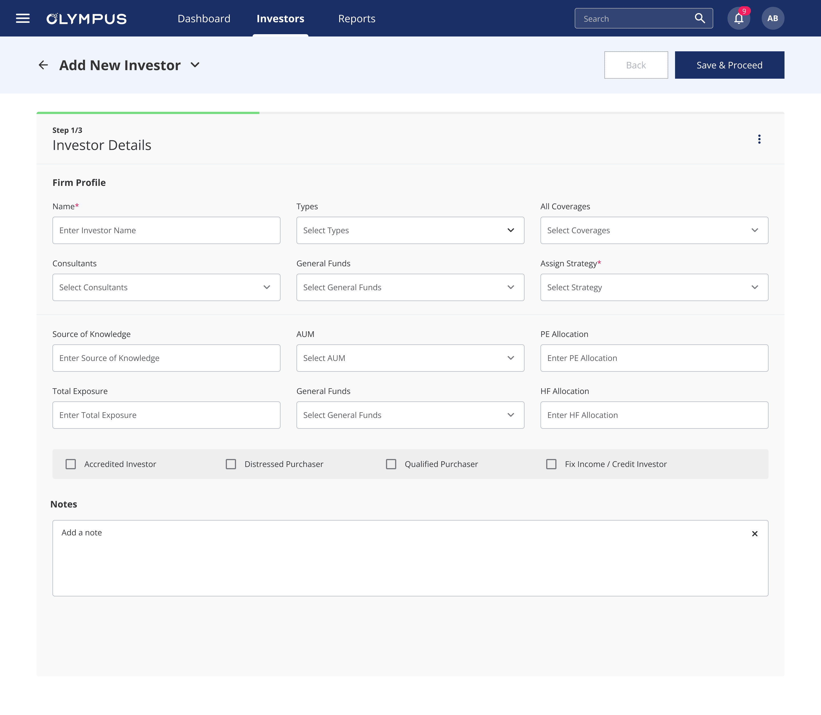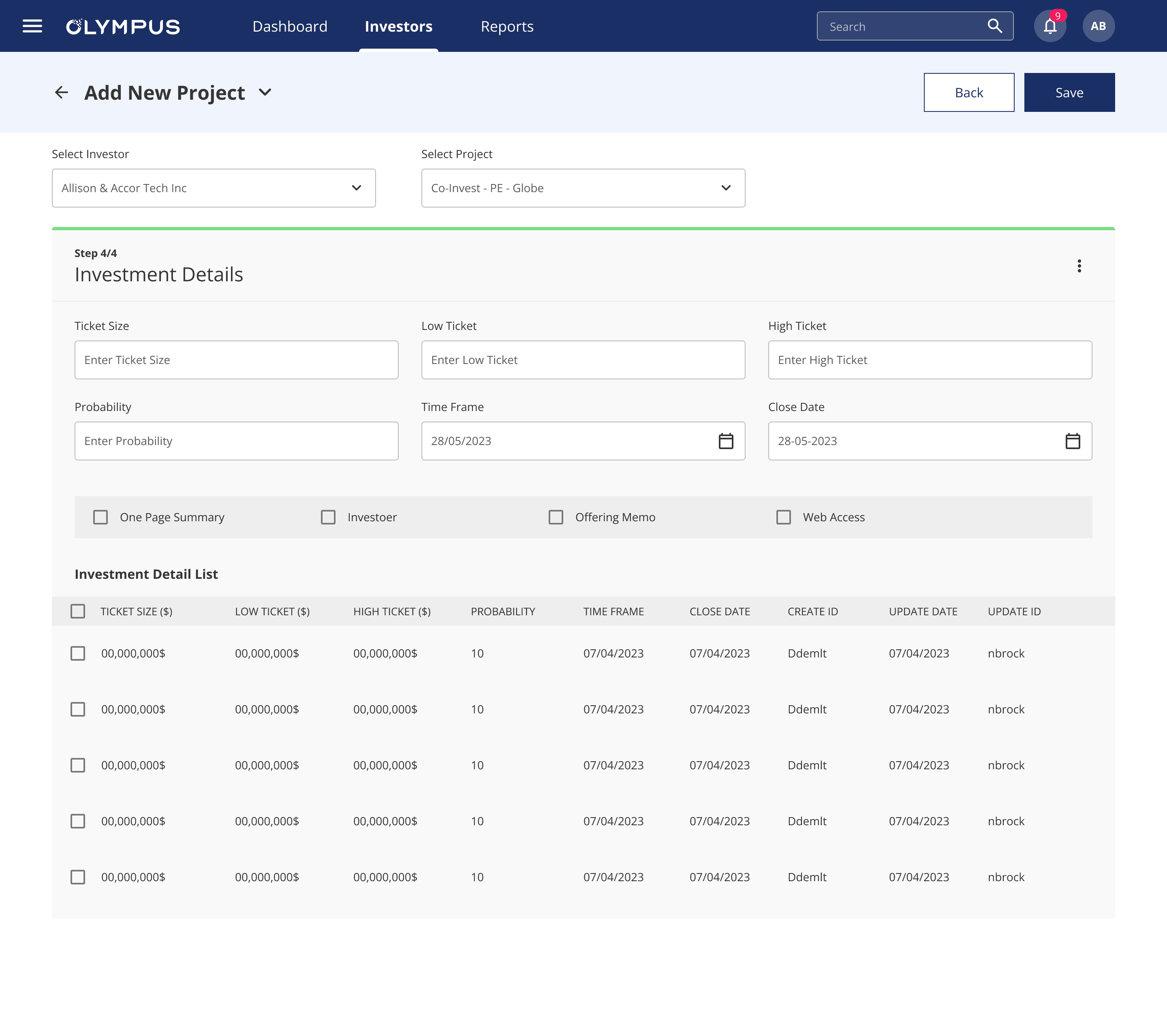Add New Investor Flow
